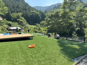 この後全体的に施工し、初夏の山脈とマッチした明るい芝のコントラストが風景に溶け込み映えが素晴らしかったです